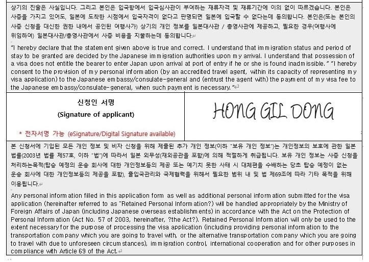 '신청서의 서명'은 여권의 서명과 동일하게 해주셔야 합니다. (여권 서명란에 서명이 되어있는 경우)